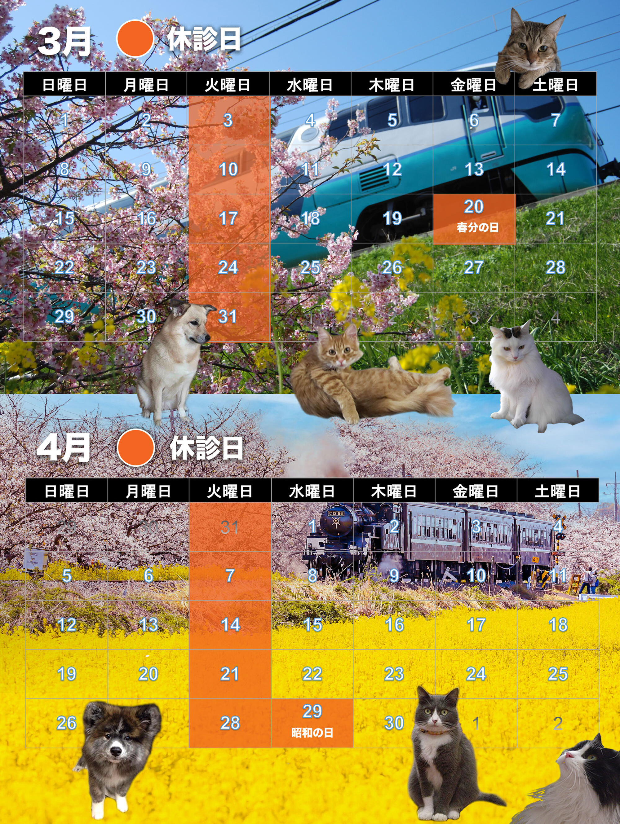 日曜日は診察のみとなります。爪切りなどのお手入れ、歯磨きマラソンは平日(土曜日含む)だけとなりますのでご了承ください。歯磨きマラソンについては、料金などの変更がありますので詳しくはスタッフまで。