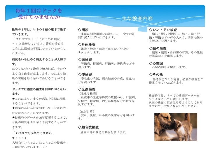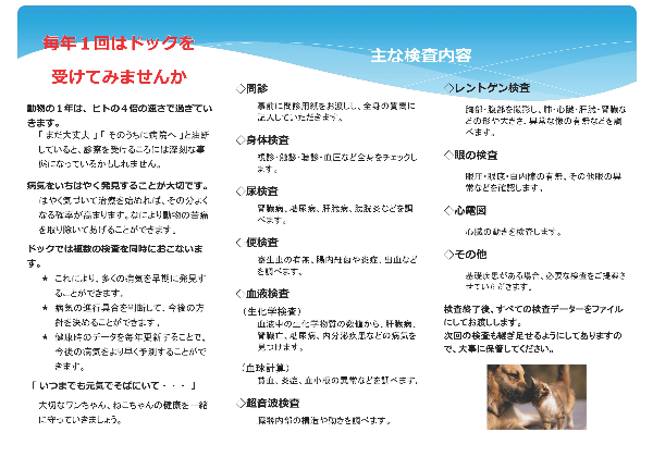 もん動物病院では、診療以外にも、ワンちゃん、ネコちゃんの健康増進ための、数々のプロモーションを用意しています。