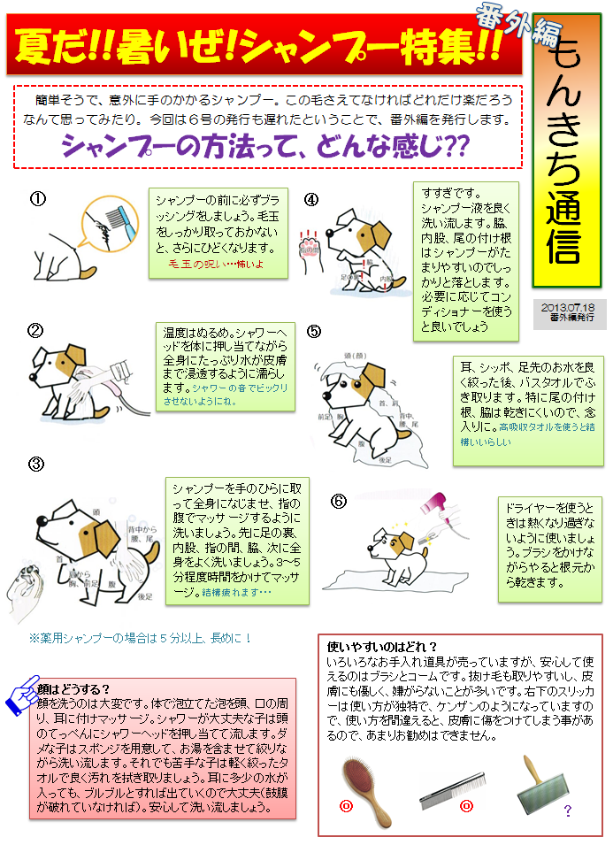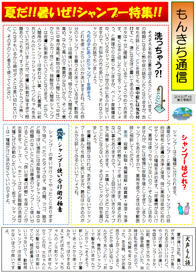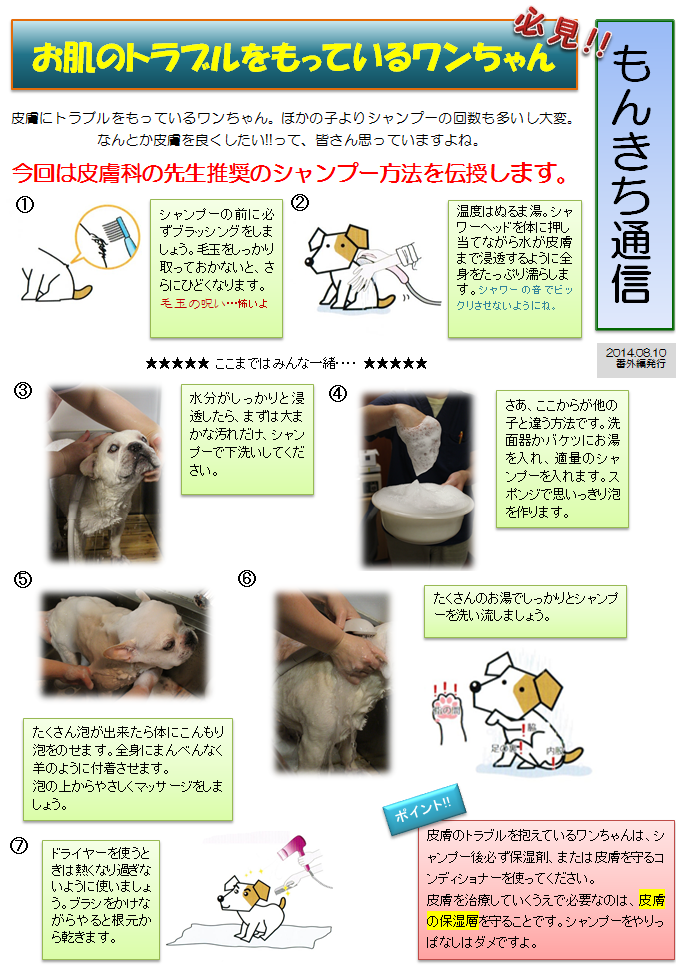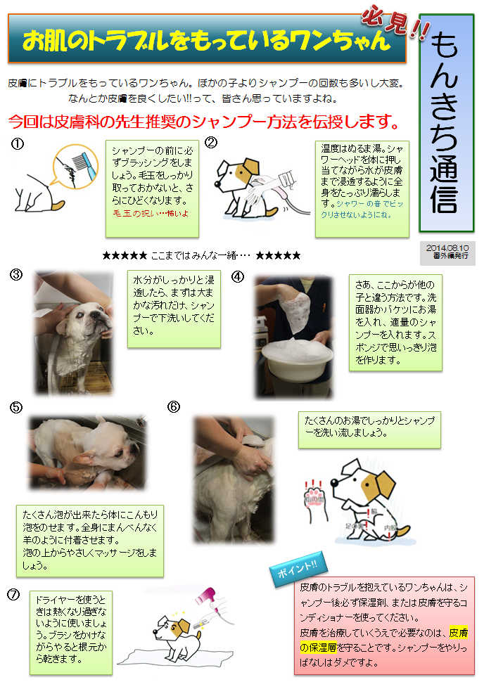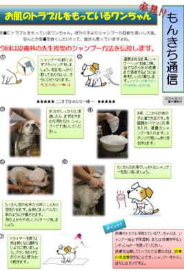 今回は皮膚トラブルのあるワンちゃんのシャンプー特集です。待合室に置いてあるのでぜひご覧ください
